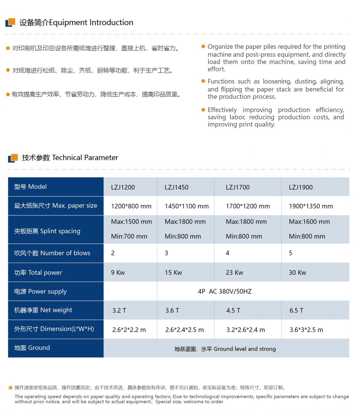 對(duì)印刷機(jī)及印后設(shè)備所需紙堆進(jìn)行整理,直接上機(jī),省時(shí)省力。 對(duì)紙堆進(jìn)行松紙、除塵、齊紙、翻轉(zhuǎn)等功能,利于生產(chǎn)工藝。 有效提高生產(chǎn)效率,節(jié)省勞動(dòng)力,降低生產(chǎn)成本,提高印品質(zhì)量。